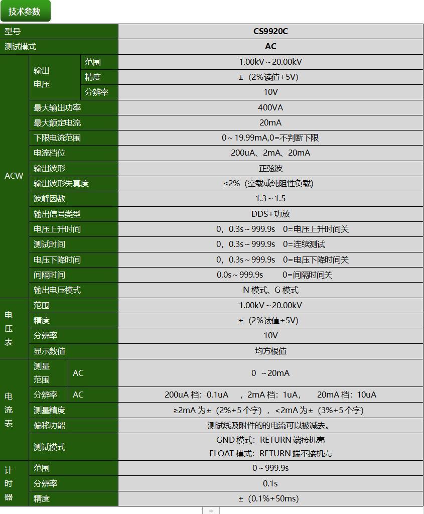 CS9920C程控超高压测试仪产品参数