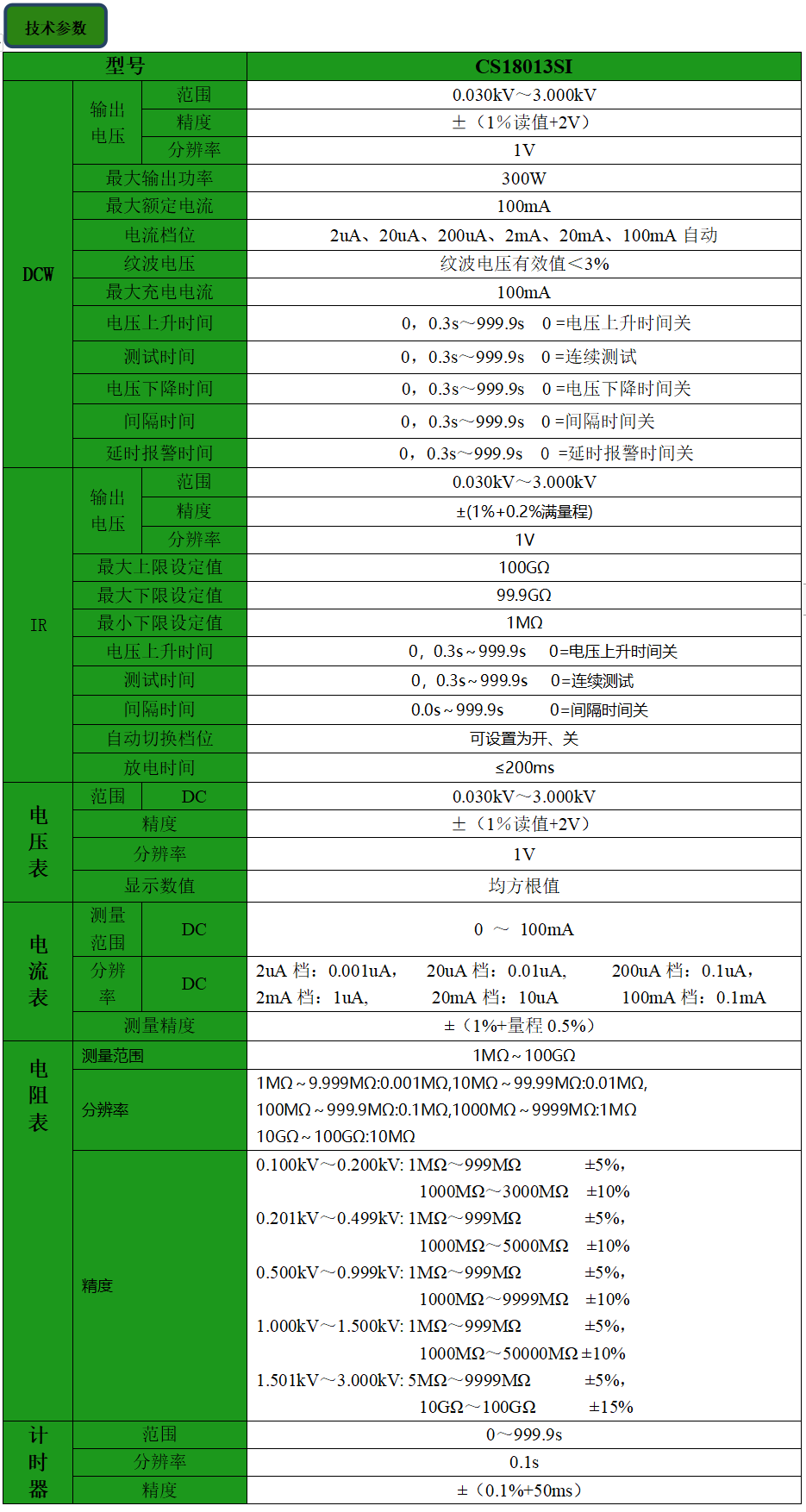 CS18013SI 电容器绝缘耐压测试仪产品参数