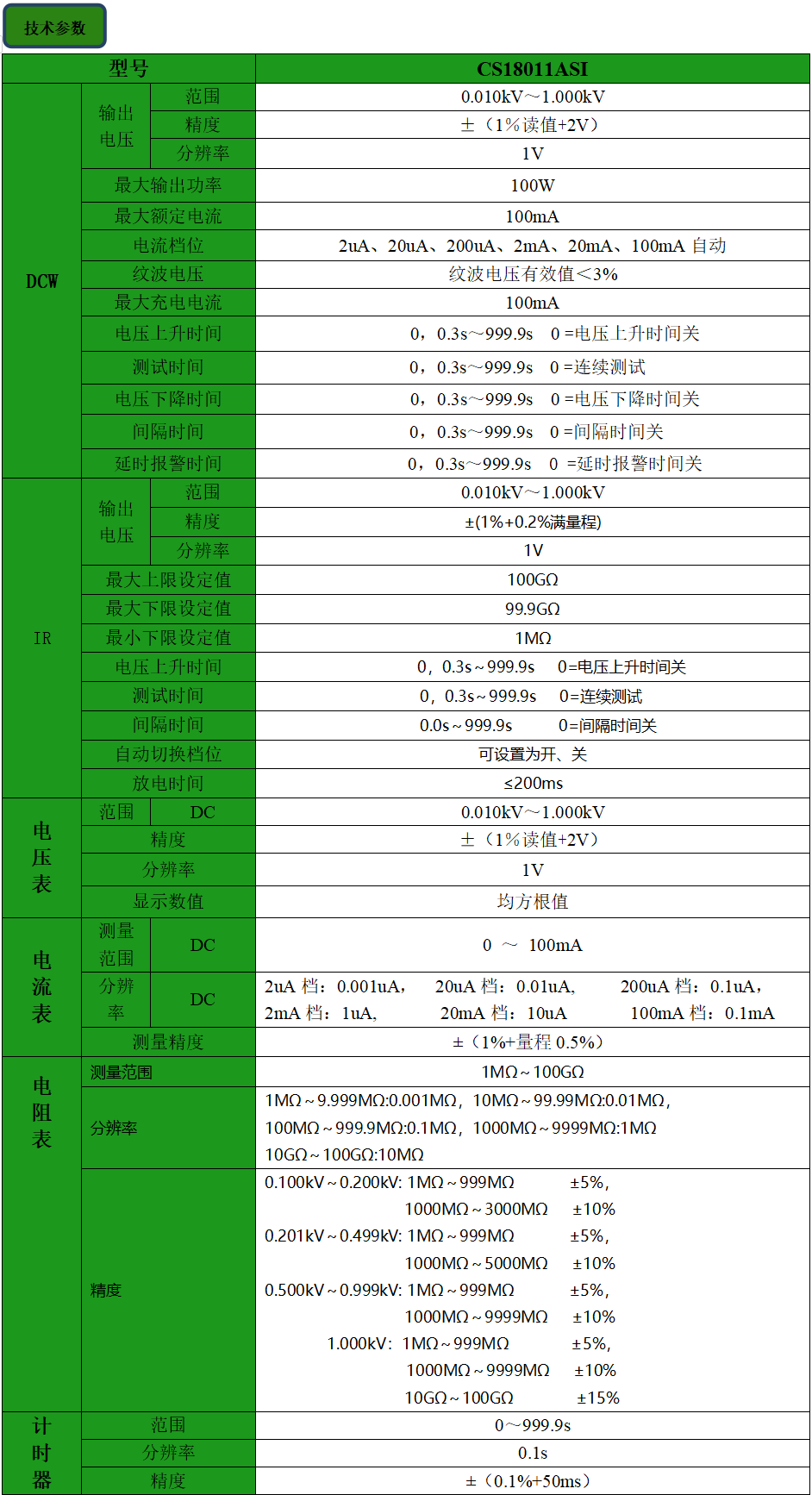 CS18011ASI 电容器绝缘耐压测试仪产品参数