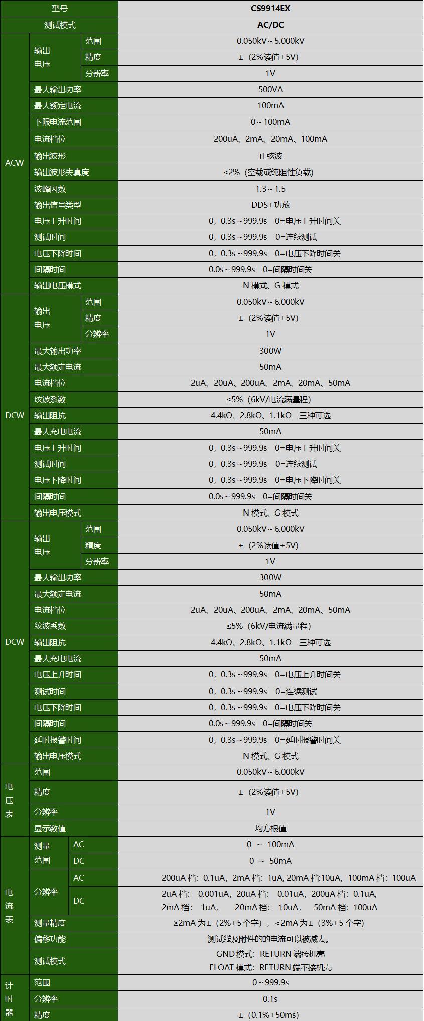 CS9914EX程控高压电容器漏电流测试仪产品参数