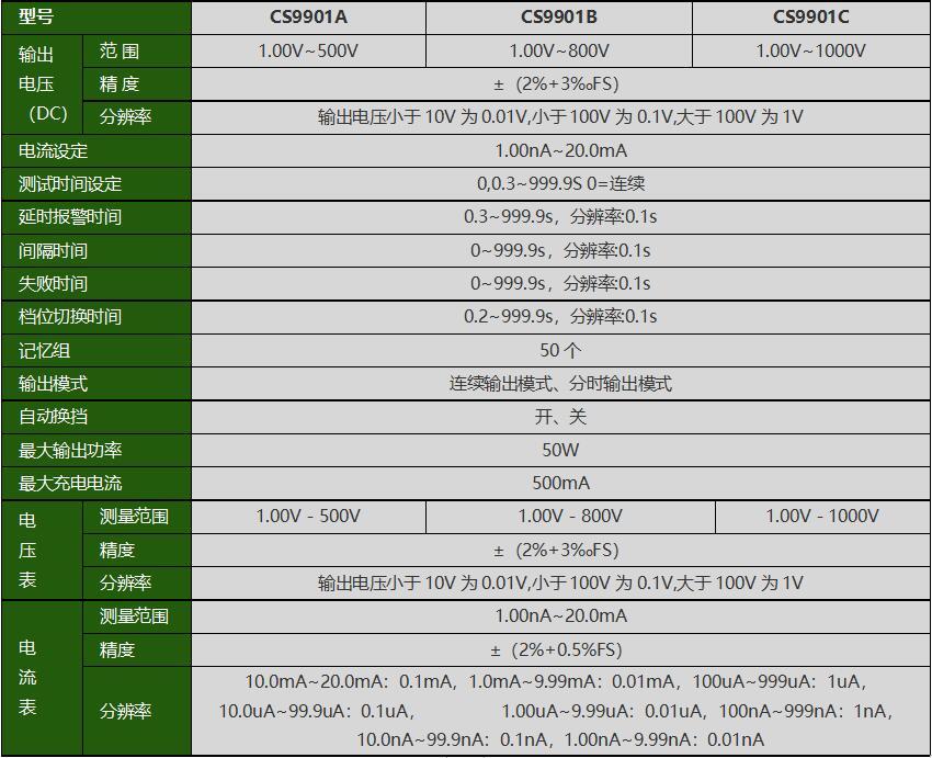 输出电压具有连续输出、分时输出功能;在连续输出电压模式下,测试不合格时,测试仪切断高压延时后(延时时间可设定)自动启动进行测试