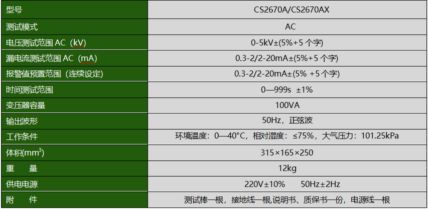 CS2670A耐压测试仪,电压:交流AC0-5KV,电流:0-20mA,不含PLC接口,不含遥控棒,