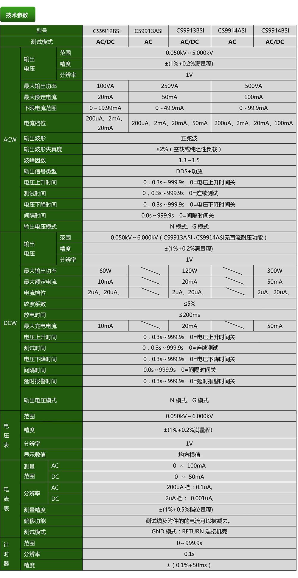 CS9912BSI:ACW:5KV/20mA,DCW:6KV/10mA