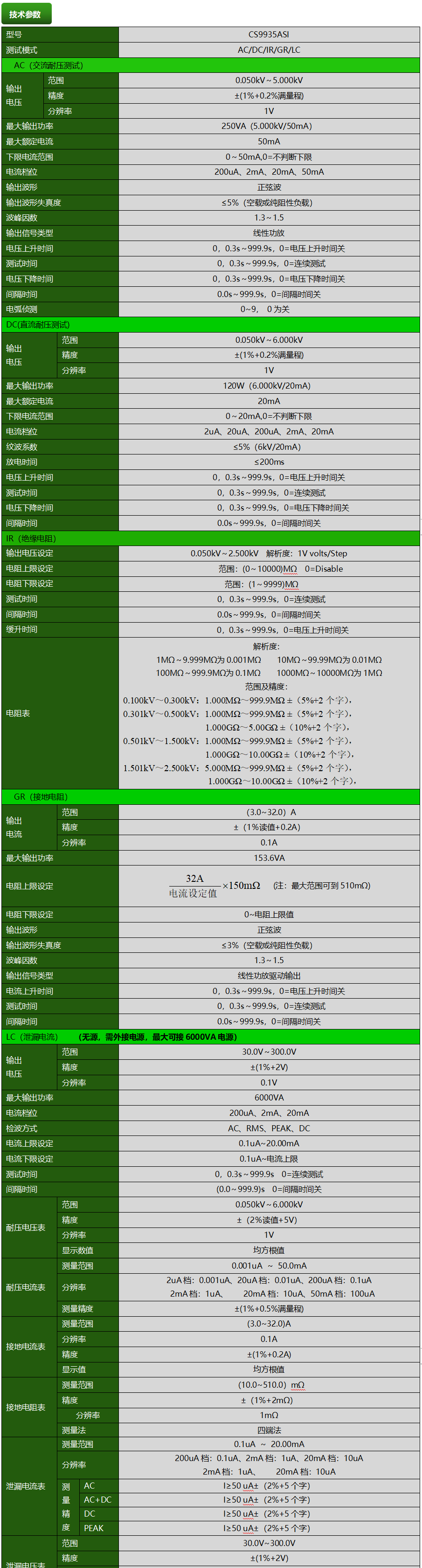 l具有双频综合测试,频率范围50 Hz、60 Hz。