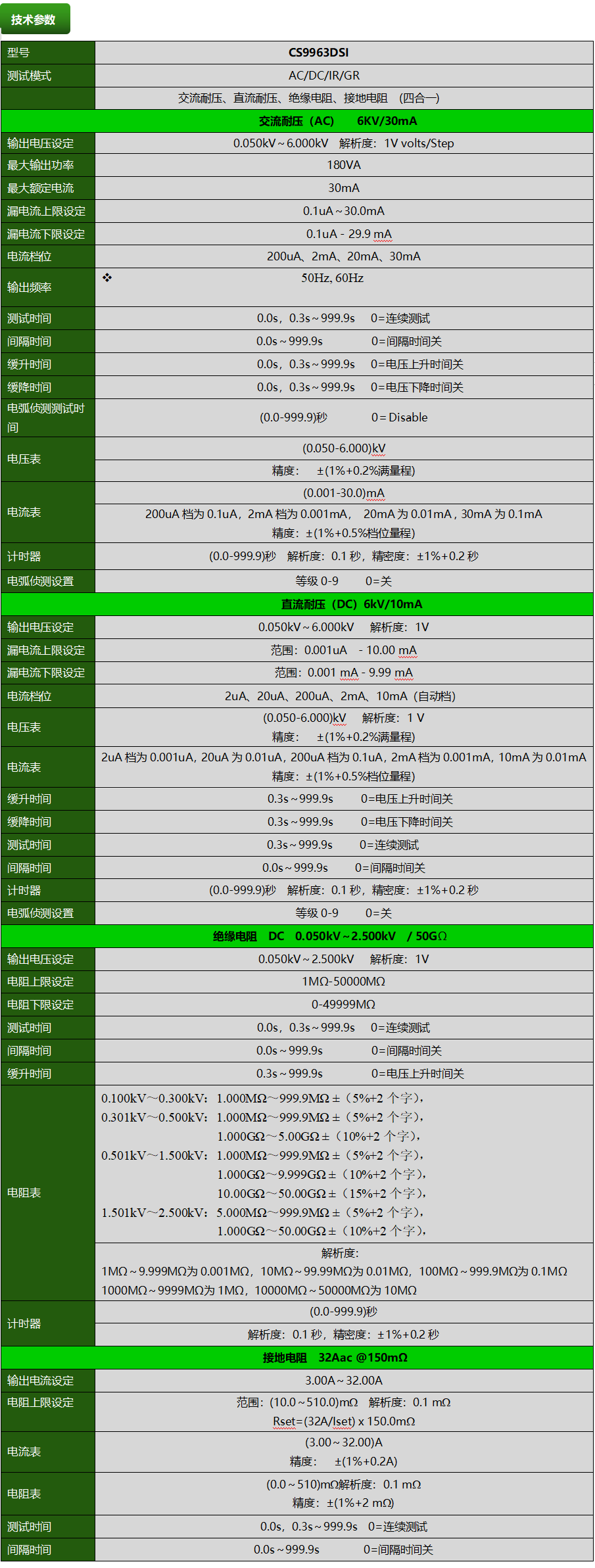 l具有双频综合测试,频率范围50 Hz、60 Hz。