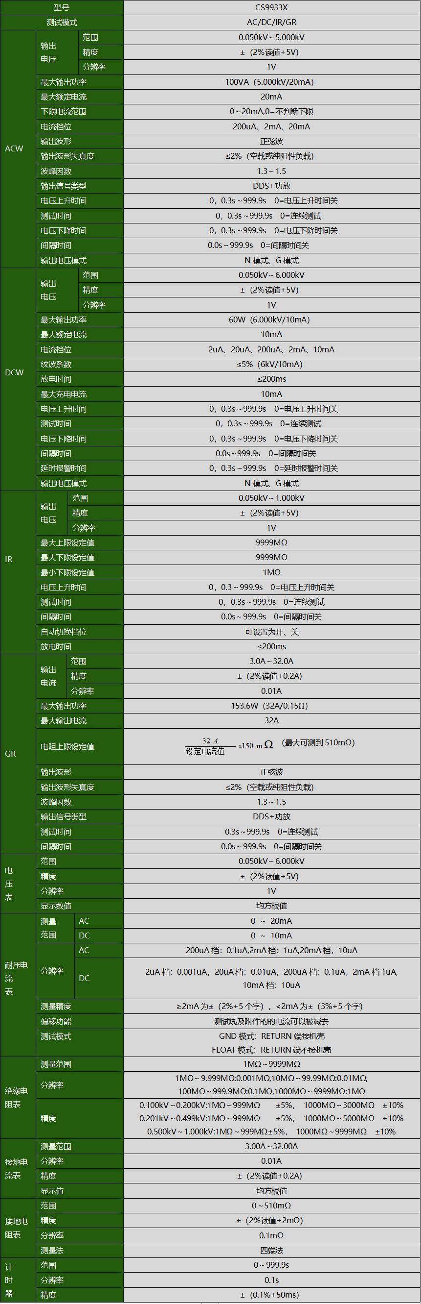 CS9933X程控安规综合测试仪产品参数