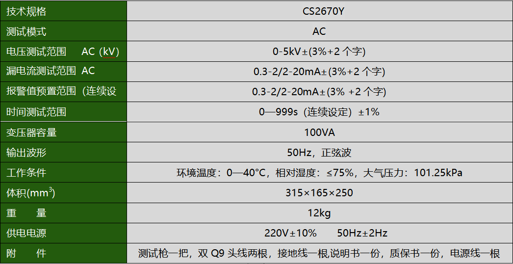 CS2670Y医用耐压测试仪(AC)产品参数