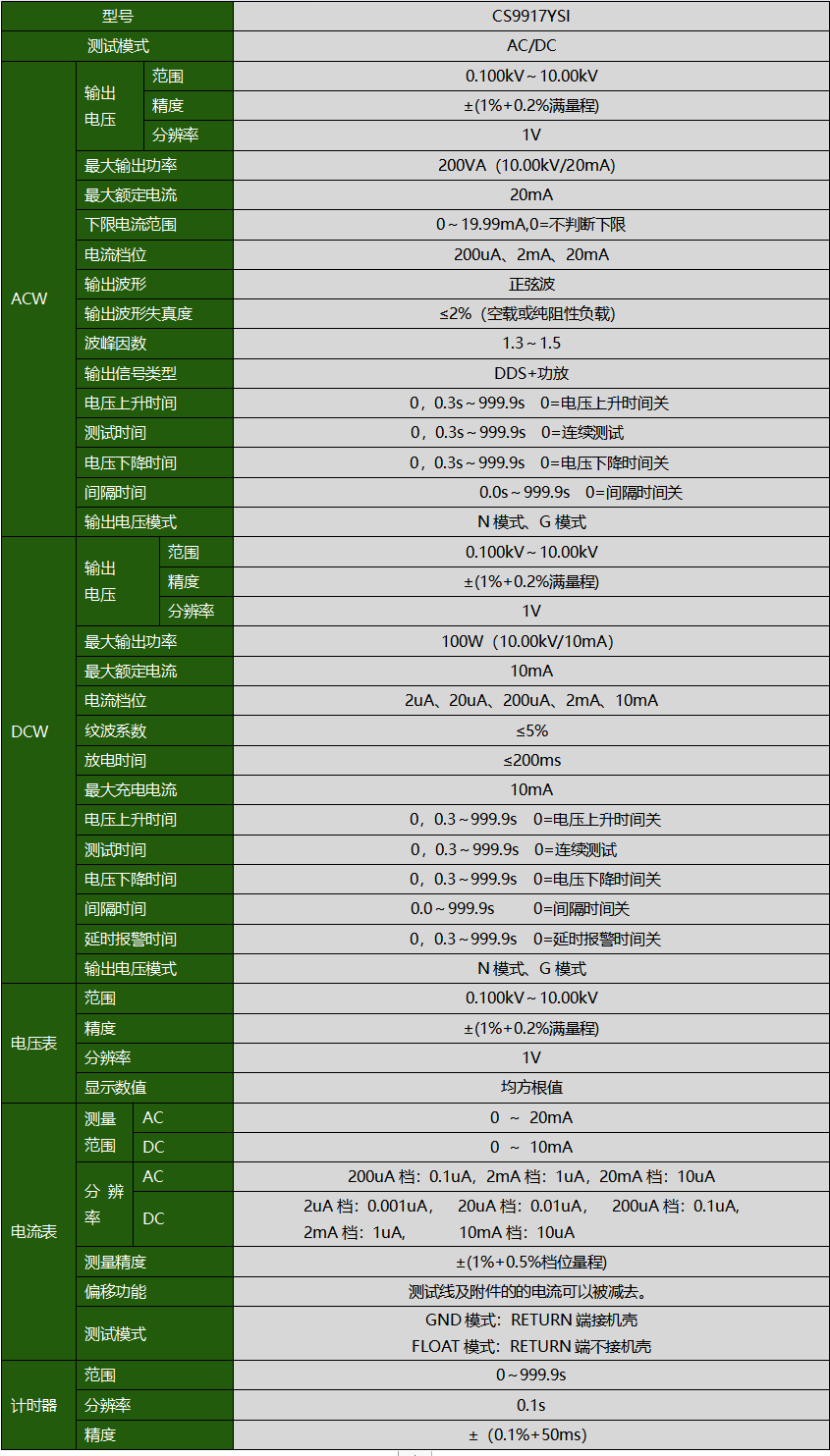 CS9917YSI程控医用耐压测试仪(AC/DC)产品参数