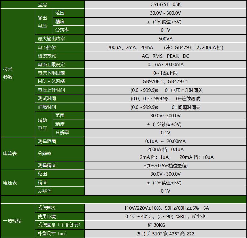 CS1875FJ-05K医用漏电流测试仪产品参数